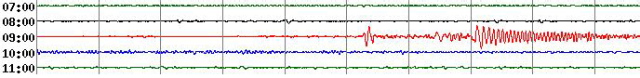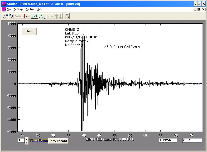 A magnitude 6.2 quake south of Panama. The signal was IIR filtered in my DSP starter kit for this recording. The DSK has a 14 bit A/D converter.