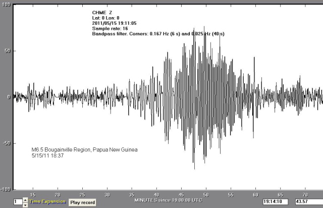 M6.2 New Ireland Region of Papua New Guinea. LQ and LR surface waves were detected from this distant quake.