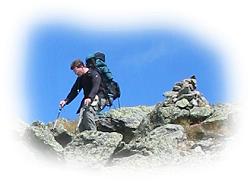The last part of the climb to the summit had been in a cloud. I checked with the Ranger at the summit station to see what was happening with the weather. If it was deteriorating we would backtrack to the hut and the Ammy, which is the fastest way below tree line on the west side of the mountain. The ranger said the weather was okay, and it was sunny down below, so we would take the Jewell as planned.