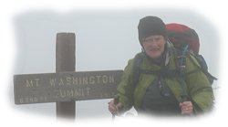 When we reached the summit of Washington we bought bowls of hot chili. They were hot alright, and not just in temperature. While Joe finished his, I went out side and filled our water bottles at the outside fountain. That was a trick since the wind blew so hard it kept blowing the stream of water sideways and I had to follow it with the water bottle.