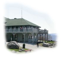 Back at the bunk room we packed our gear, bid the two ladies farewell, and struck out for the summit. In no time we had to stop and pile on hats, gloves, fleece coats and wind coats. It was a sunny day, but the wind was raw. This section of Crawford Path has uneven footing and rock hopping, but it’s easy, and what a trail it is, with its views. Looking back down the slope to the hut and then up to Monroe, it’s so pretty you almost forget to keep hiking. When we reached the summit of Washington we bought bowls of hot chili. They were hot alright, and not just in temperature. While Joe finished his, I went out side and filled our water bottles at the outside fountain. That was a trick since the wind blew so hard it kept blowing the stream of water sideways and I had to follow it with the water bottle.