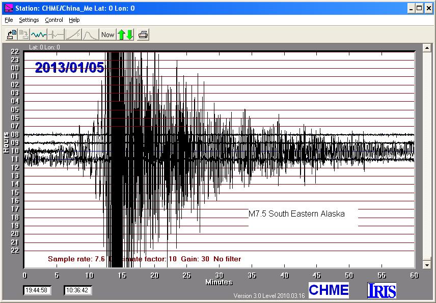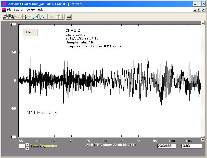 Another recent major earthquake in recent days this time in Maule, Chile. The M7.1 quake produced a much smaller recorded signal than the Mexico quake.