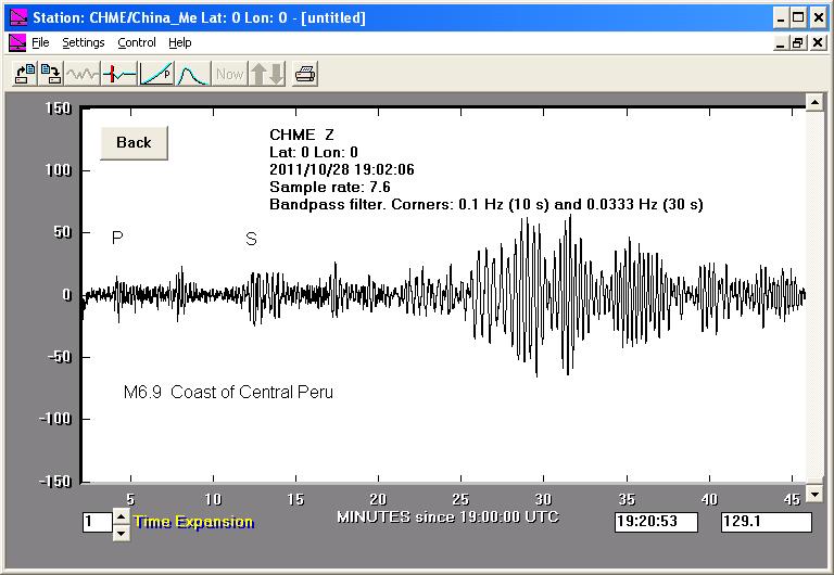 Yet another major quake, this one in Peru of magnitude 7.0. This quake was quite deep at 145 km and did not produce large surface waves. Unfortunatly, the seismometer was recording glitches during the time of this quake.