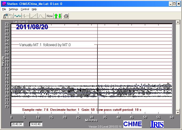Another large but far away earthquake, this time in Vanuatu and M7.1. Some surface waves were recorded. It seems that activity has been quiet the pass couple of months.